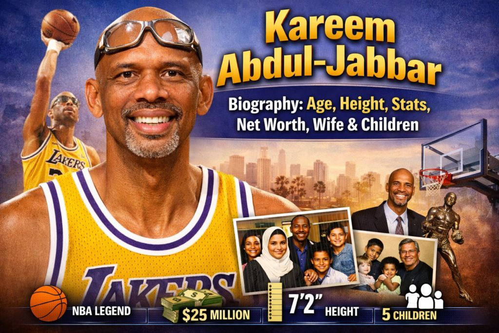 If you are discussing the best players in the history of basketball, then the name Kareem Abdul-Jabbar is also among the most top-rated names. Perhaps best known for his unguardable skyhook shot, astonishing longevity and intellectual presence away from the court, Kareem is more than an N.B.A. legend; he’s a cultural icon. In this comprehensive biography, we delve into Kareem Abdul-Jabbar age, height, stats, net worth, wife, children and his life journey.